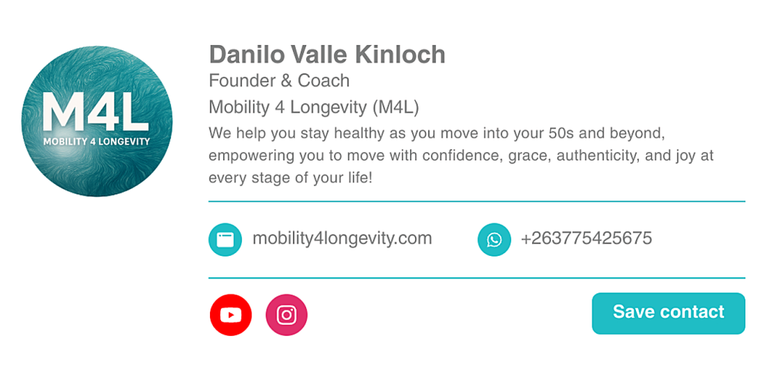 Interested, poised, positively charged and ready to push forward? Click on the link below to reach our Online Booking Platform or click on the business card to download all our contact details. Services available both In-Person and Online. Looking forward to training with you soon! and PowerrrrRR UP!!!